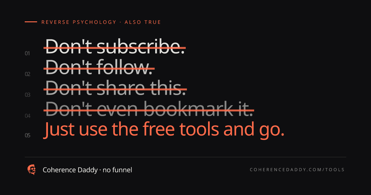 Share URL · click to selecthttps://coherencedaddy.com/?utm_source=x&utm_medium=social&utm_campaign=og-dont-subscribe
