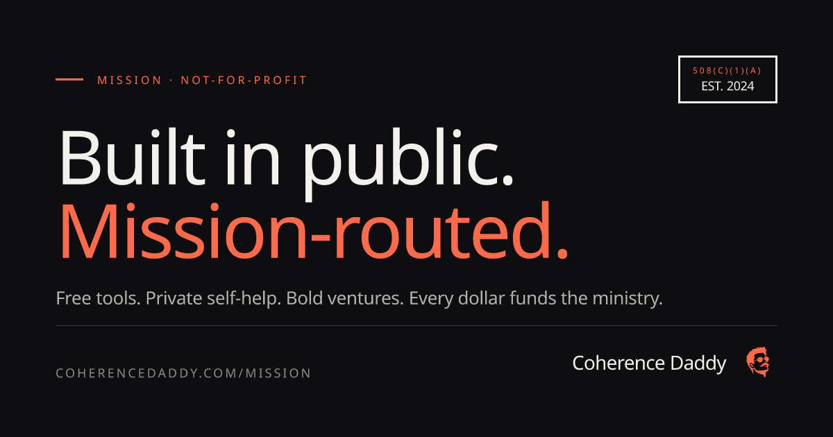 Share URL · click to selecthttps://coherencedaddy.com/?utm_source=x&utm_medium=social&utm_campaign=og-mission