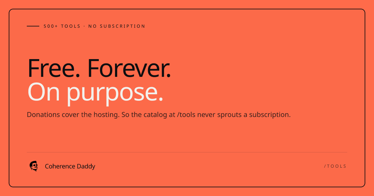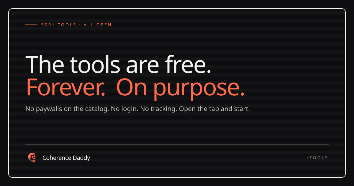 Share URL · click to selecthttps://coherencedaddy.com/tools?utm_source=x&utm_medium=social&utm_campaign=og-og-free-on-purpose