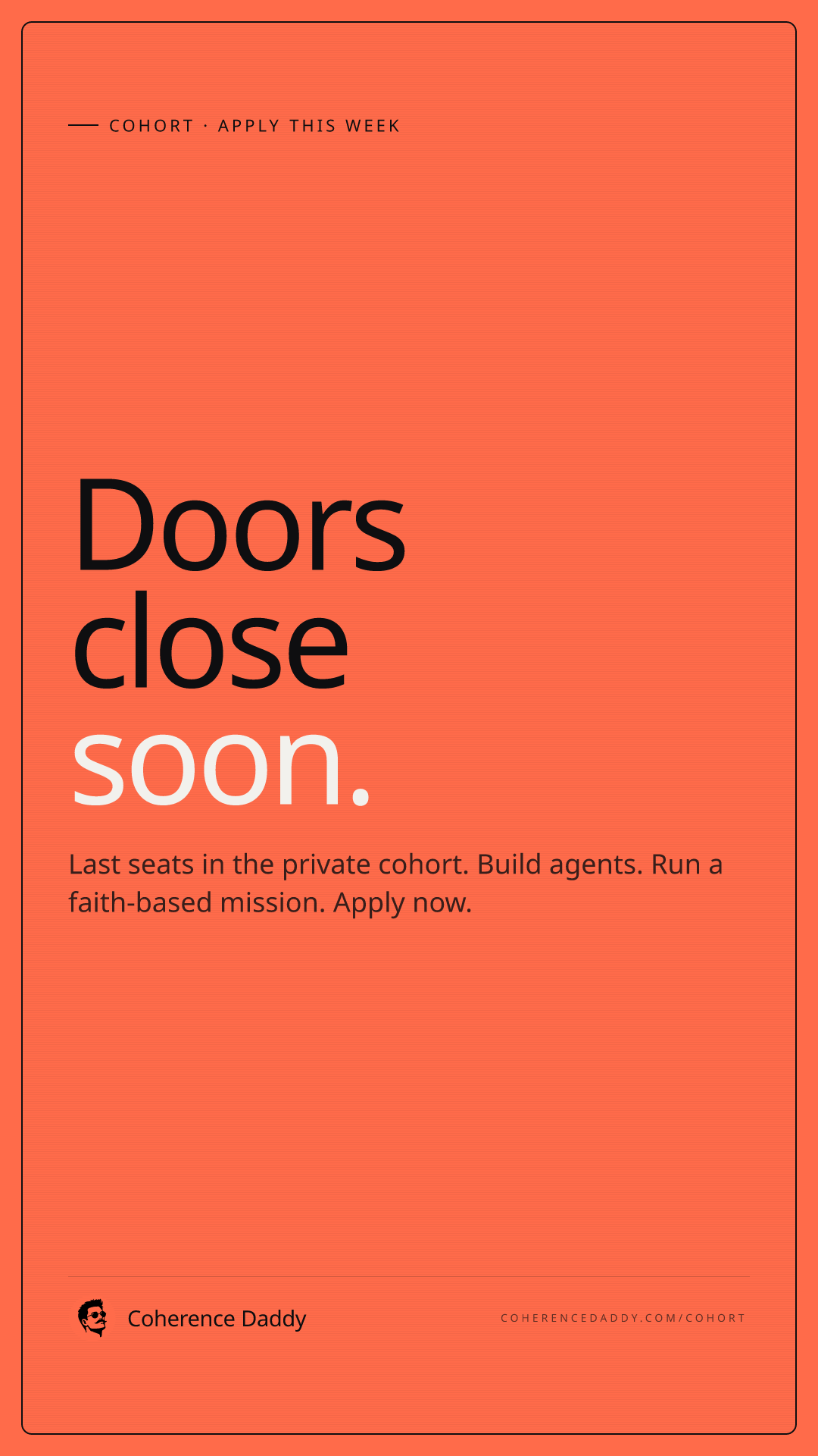 Share URL · click to selecthttps://coherencedaddy.com/cohort?utm_source=ig-story&utm_medium=social&utm_campaign=og-story-doors-close